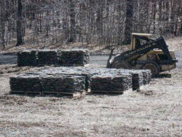 The thin version of the Endless Mountain Fieldstone is especially desirable for building low profile stone walls. All stone is flat with various sizes and thicknesses. 1" to 3" maximum thickness and 8" to 18" diameter.