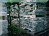 Flagstone rubble with no sawed edges, 6" to 2 feet in diameter. Thickness of 1" to 2".
